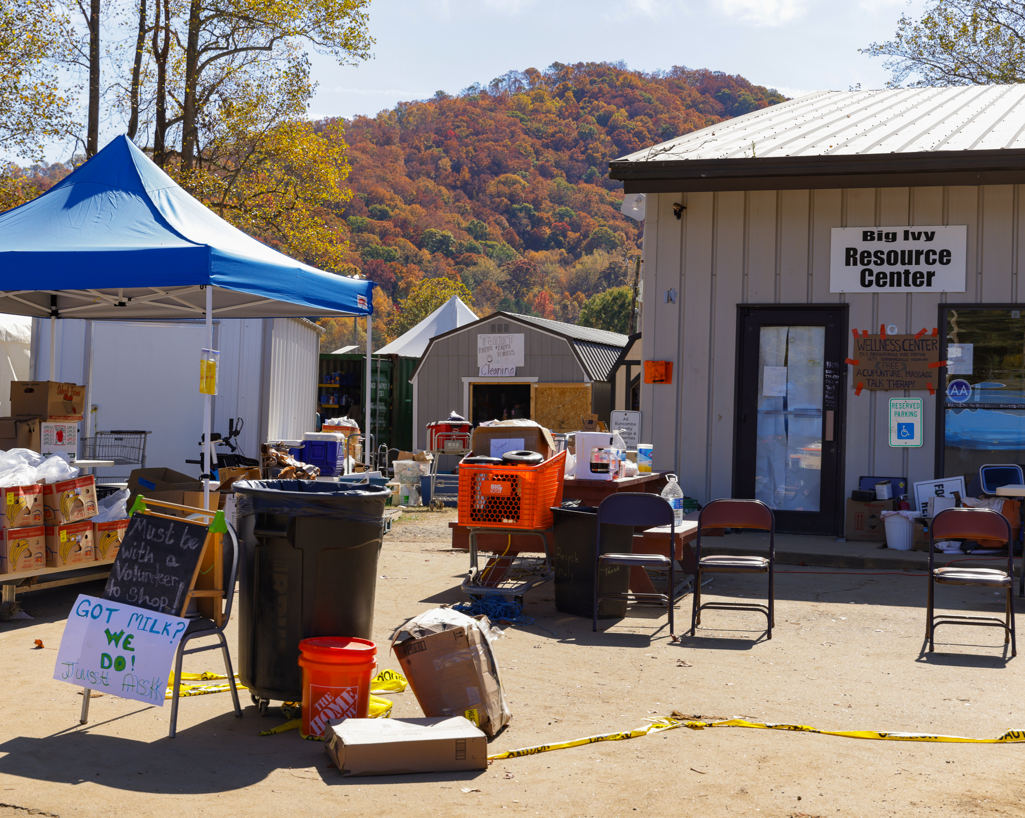 At Big Ivy, we encountered both heartbreak and hope. The devastation was more extensive here, with fallen trees, raw riverbanks covered in debris, and homes off their foundation telling the story of the hurricane's fury. Yet amid this, we found strength. Community members came together. The need for volunteers was clear, and we saw residents still living in tents. The hope was also bright, the resources were still flowing in and the community was communicating together. Their dedicated community team worked tirelessly, connecting people to resources.