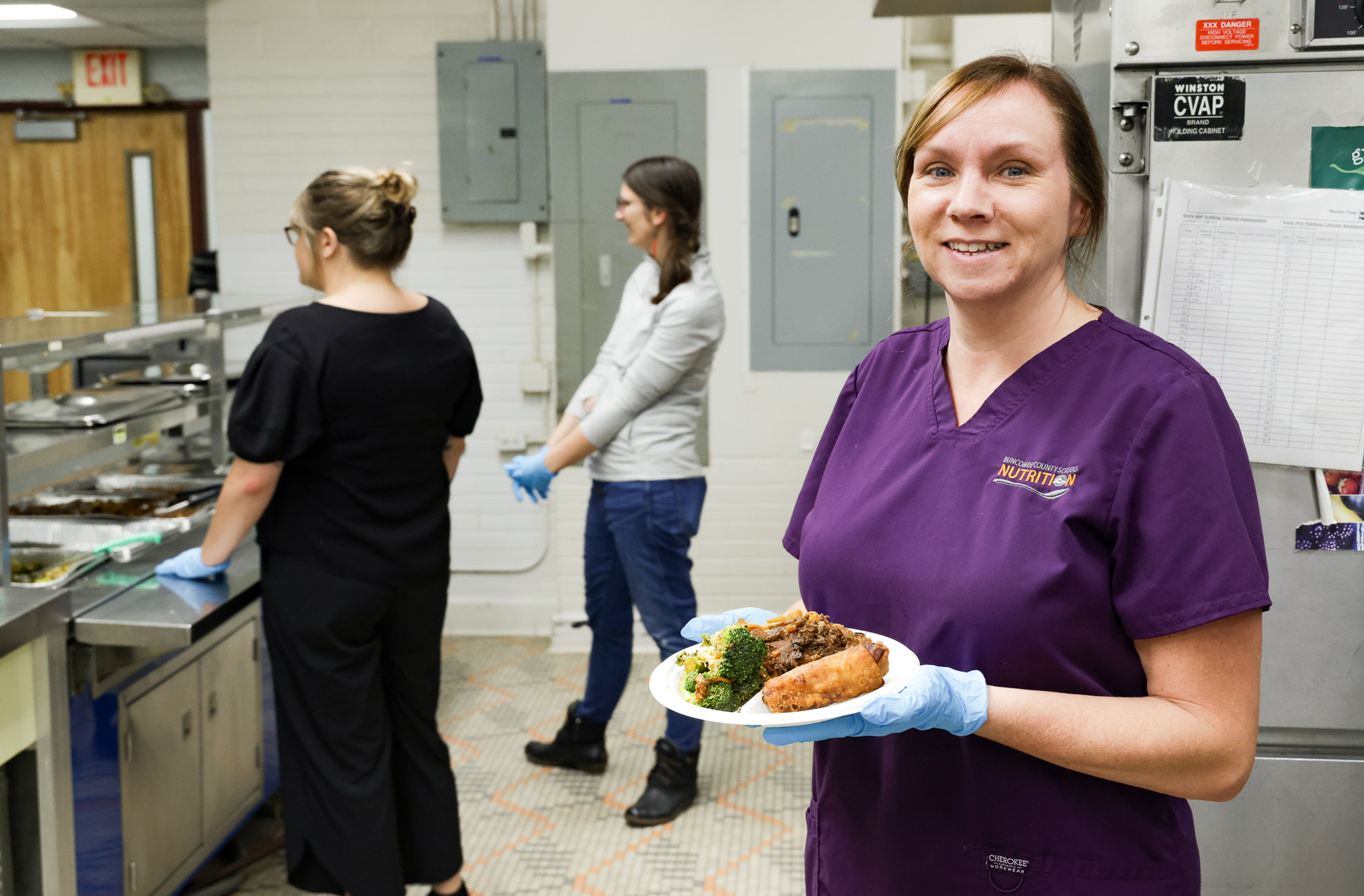 We joined Clarence recently at Owen Middle School in Swannanoa, where he served up vegetarian and chicken lo mein, crispy egg rolls, and Szechuan broccoli. The excitement in the cafeteria was contagious — especially over those egg rolls!