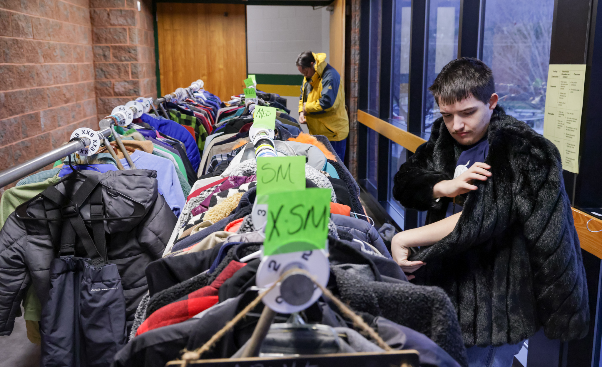 As families moved through the building, they found more than a meal and a place to gather. Over 250 freshly cleaned winter coats were shared, along with hats, gloves, and hoodies—each one made possible through an incredible network of partners and volunteers. From the NC Medical Society Coat Drive at the Grove Park Inn, to Swannanoa Cleaners donating the cleaning of every single coat, to resource team members laundering eight full bags, this was community effort layered upon community effort. Six Key Club students from A.C. Reynolds High School—guided by PTSA Vice President Marsha van Rijssen—sorted and organized every coat with care before families arrived, making sure everyone could find something that fit and felt right.