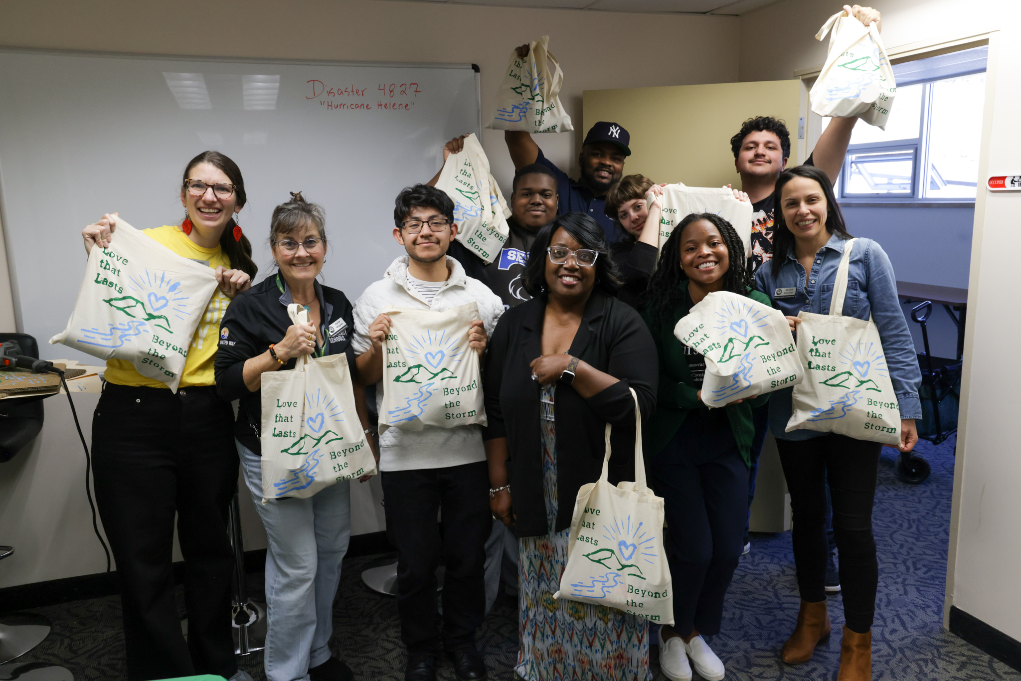 And still, the meal kits had more caring hands to pass through. A final volunteer group, visiting UWABC for a service project, decorated high-quality tote bags and packed all the ingredients and spices into them. Each tote was hand-painted with the message “Care that Continues Beyond the Storm.” Families not only received a hearty, nutritious chili meal but also a lasting reminder that they are seen, supported, and cared for. In total, volunteers and students created more than 100 meal kits for families—along with 25 art kits that were given to the Reynolds school art club to support creativity and connection.