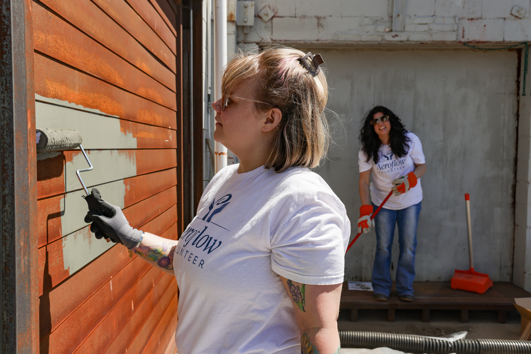 That impact was on full display during a recent volunteer day with Aeroflow Health. On a sunny April afternoon, employees came together to support ACR’s space—learning about its mission before getting to work. Volunteers planted herbs, refreshed the building’s exterior with paint, and helped maintain the welcoming environment that defines ACR. Their efforts strengthened not just the physical space, but the sense of care that greets every visitor.